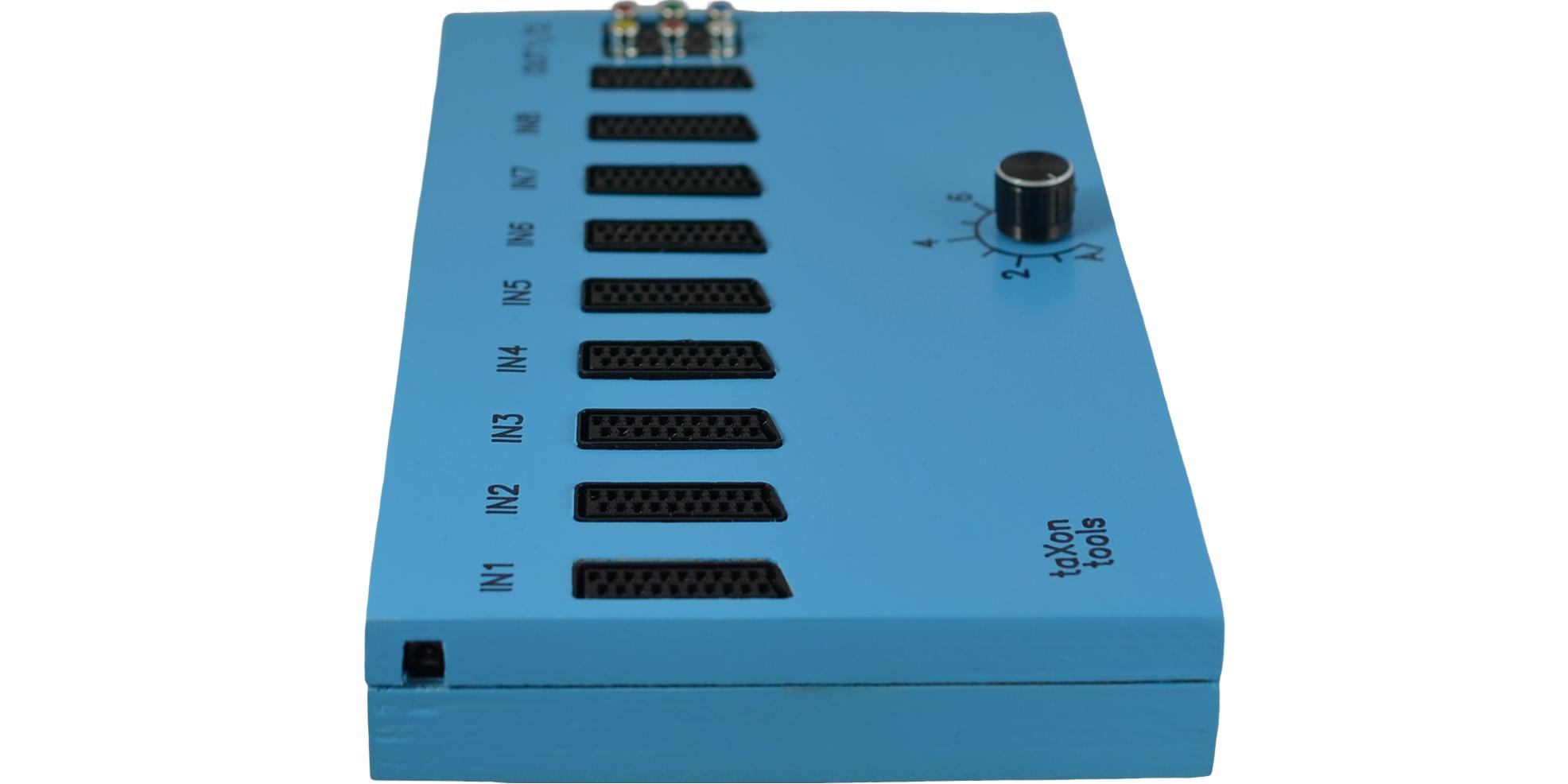The Taxon Scart Switch is calibrated manually so that the output levels of the video and RGB signals correspond to those of the input levels. This is made possible by very accurate potentiometers. Calibration is done with our recommended Scart output cable. If you use another cable, the correct calibration cannot be guaranteed. You can buy the cable in the selection menu.