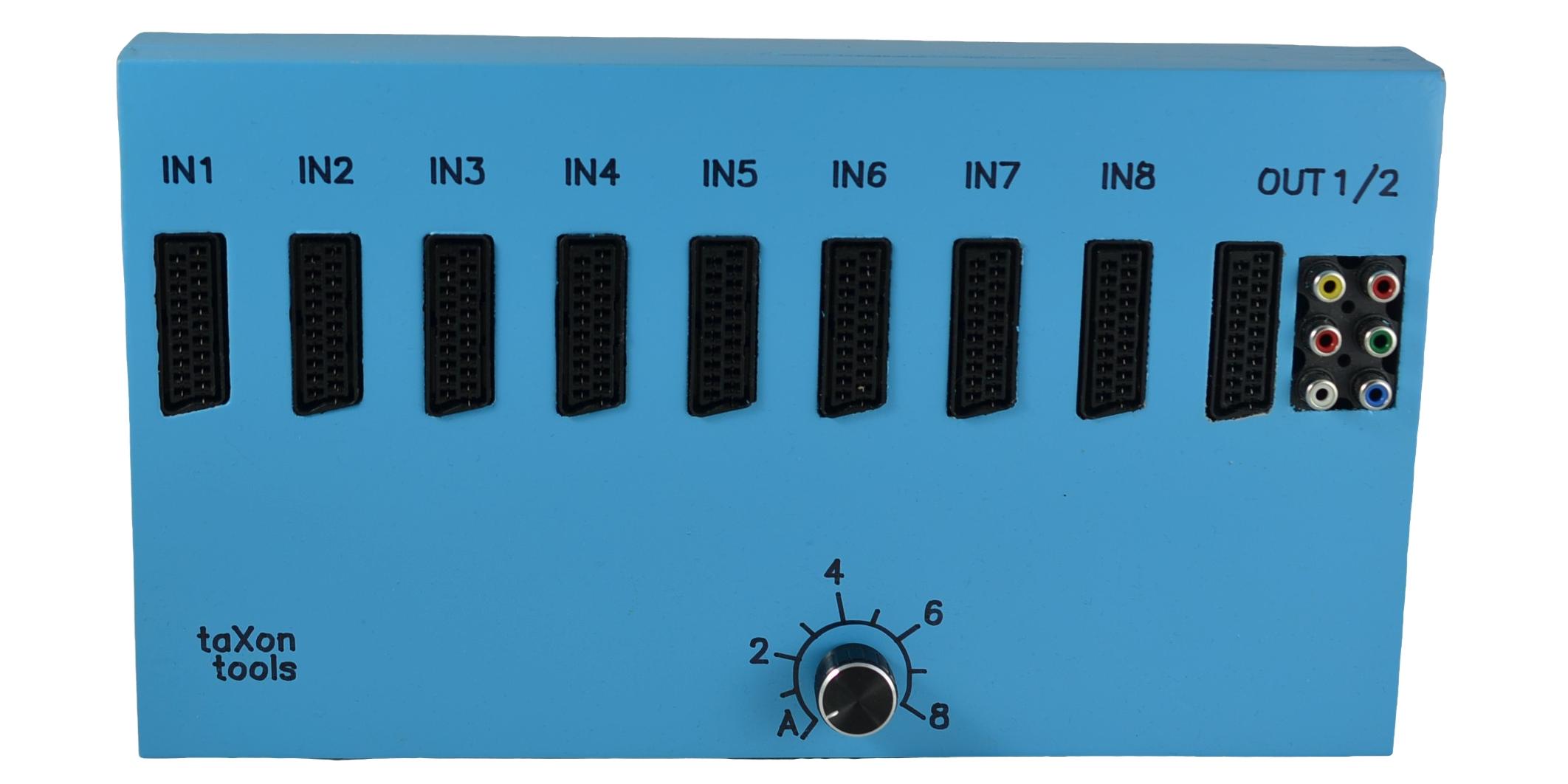 The Taxon Scart Switch makes it possible to correct wrongly wired Scart cables. Sometimes not all ground connections in the cable are correctly connected. The Taxon Scart Switch offers a common ground potential for all signals and forwards them corrected to the output device. This can lead to a better picture and sound quality with these cables.